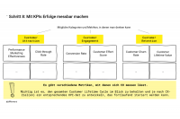 Establishing KPIs is not that easy. After all, CXM only orchestrates the customer experience - measurability depends on the concrete measures (proof points). Ideally, the relevant KPIs and metrics are therefore already considered during the planning of CX measures and recorded in the concept.