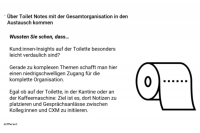 Toilet Notes are also a wonderful tool for making important customer insights tangible and easy to digest for the entire organization. Not only do they encourage you to put on your customers' glasses, but they also spark conversations between colleagues.