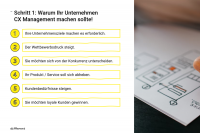 In order for CXM to become part of the corporate DNA in the long term, it must continue to develop in a targeted manner. Thinking about how you want to organize CXM is the first step. We are happy to support you!