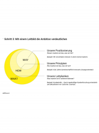 This plan can be well captured with the help of a CX mission statement. Such a customer experience mission statement is essential for determining the CX maturity, i.e. the actual position. The mission statement is also essential for the successful establishment of the strategy in the company. It contains the CX positioning (#1 Why) and the CX principles (#2 Where) and thus forms the overarching content bracket for the future design of the customer experience. This means that everyone from managers to interns is on board and knows exactly where the journey is headed.